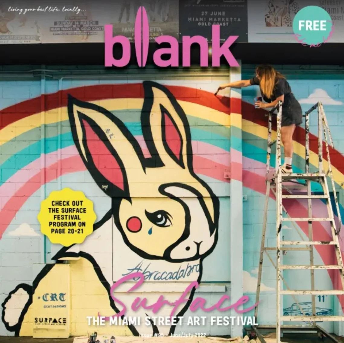 Mural at Miami Marketta for Surface Street Art Festival 2020 featured on the cover of Blank Street Press Issue #93