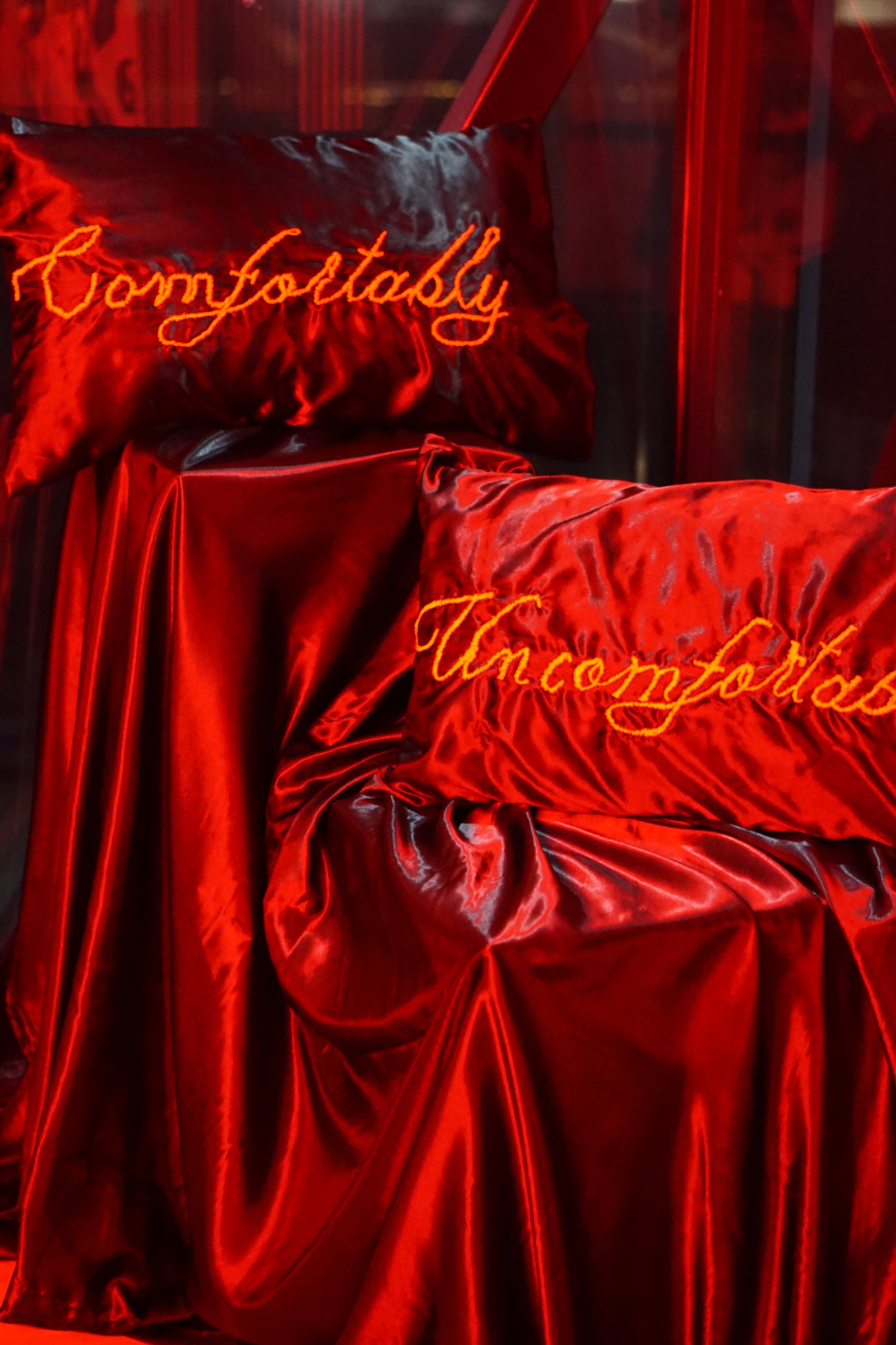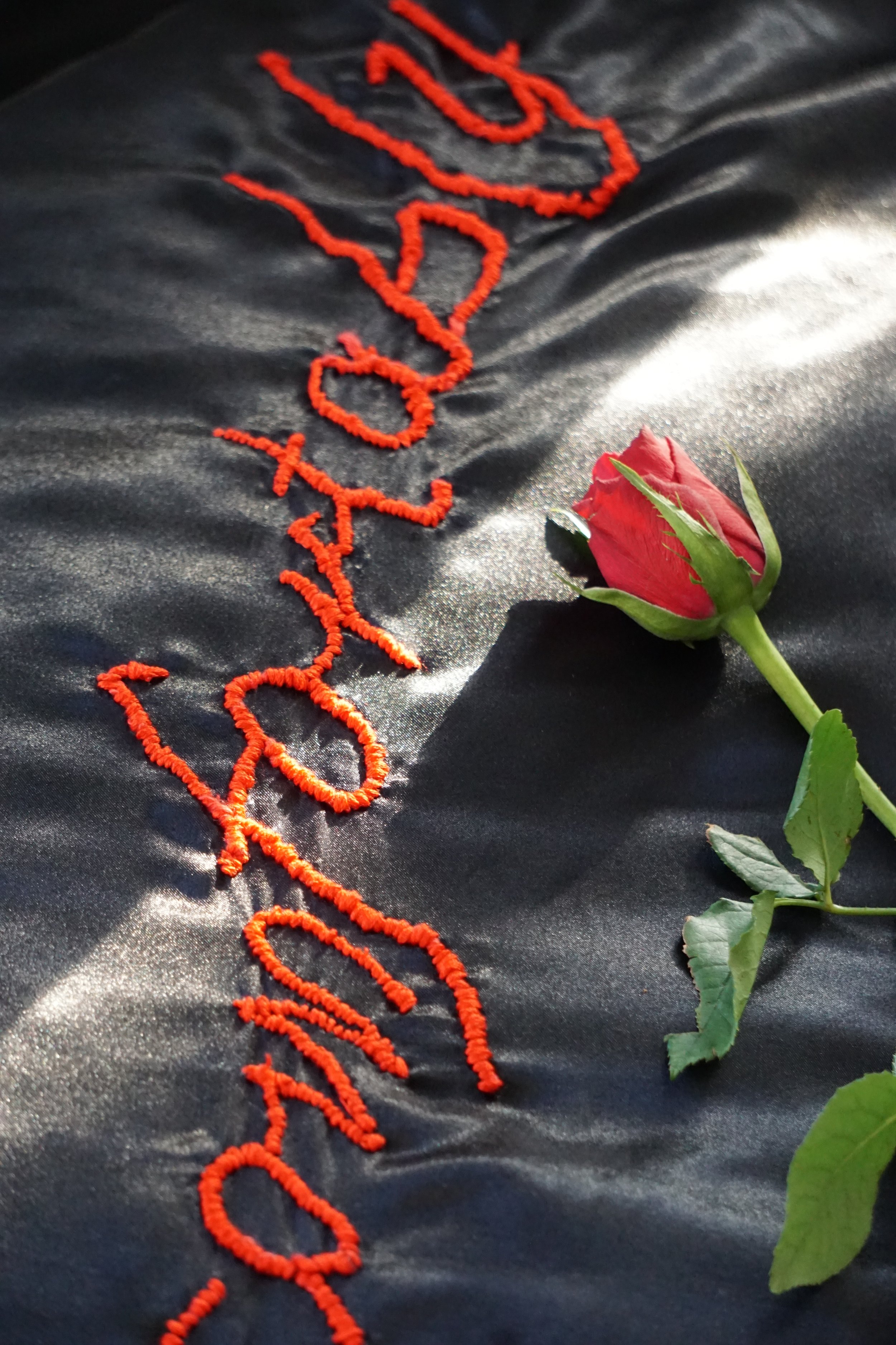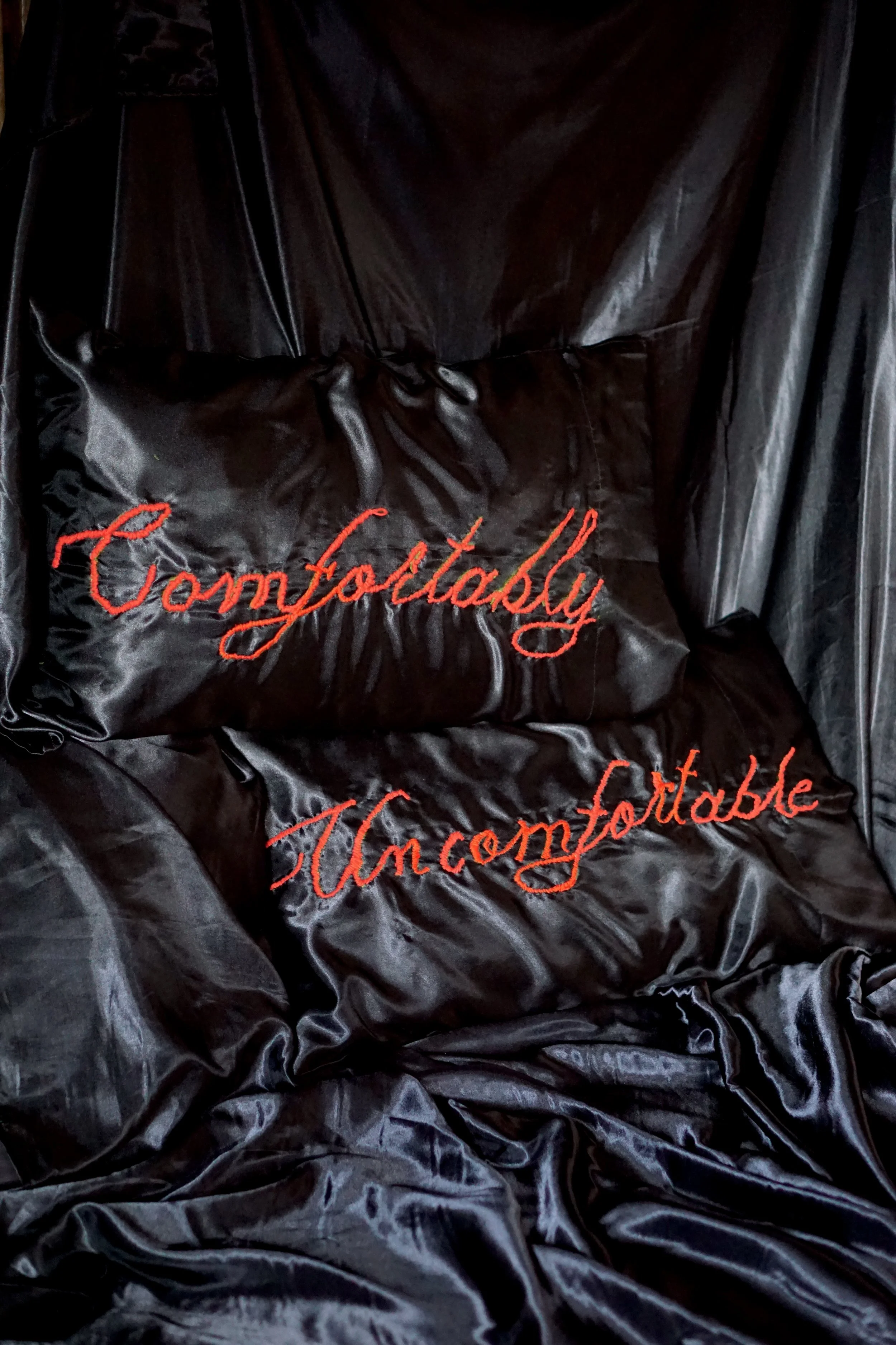 Hand embroidered on satin bed pillows
